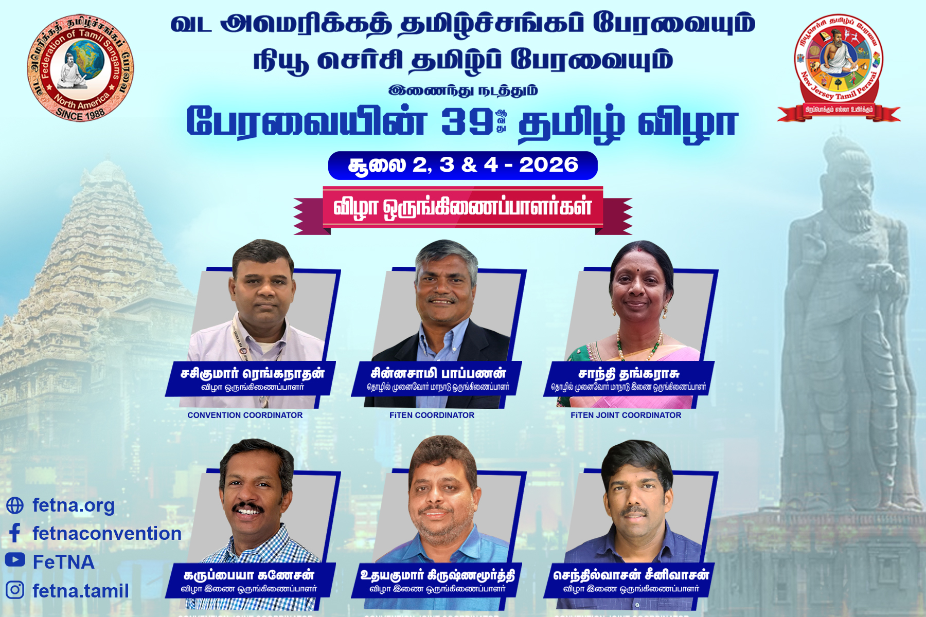 நியூசெர்சி தமிழர்கள் அனைவரையும் நியூசெர்சி தமிழ்ப் பேரவையில் உறுப்பினராக இணைந்து செயலாற்ற அழைக்கிறோம்.